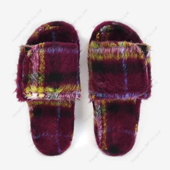 Custom Open Toe Tartan Unisex Platform Slides Sandals Adjustable Home Fluffy Faux Fur Slippers for Men