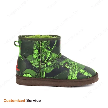 OEM Embroidery Logo New Fashion Outdoor Warm Soft Winter Print Snow Wool Sheepskin Fur Shearling Boots Manufacturer