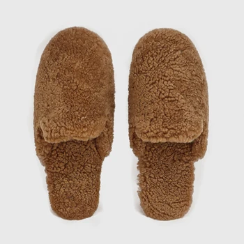 Custom Comfortable Women's Winter Wool Mules Plush Sunday Fluffy Loafer Faux Fur Slippers