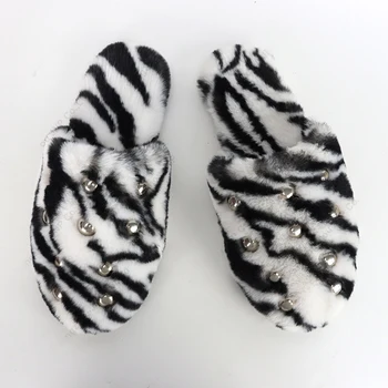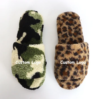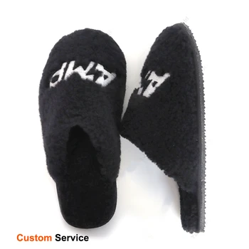 Custom Luxury Embroidered Cozy Winter Furry Indoor Slides Wool Faux Shearling Fur Slippers for Men