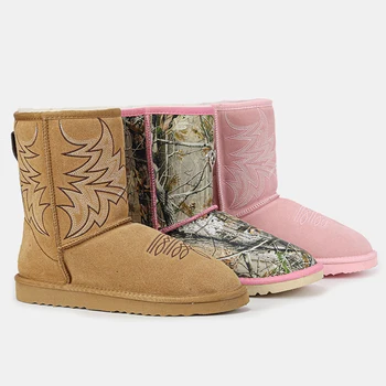 OEM Embroidery Logo New Fashion Outdoor Warm Soft Winter Print Snow Wool Sheepskin Fur Shearling Boots Manufacturer